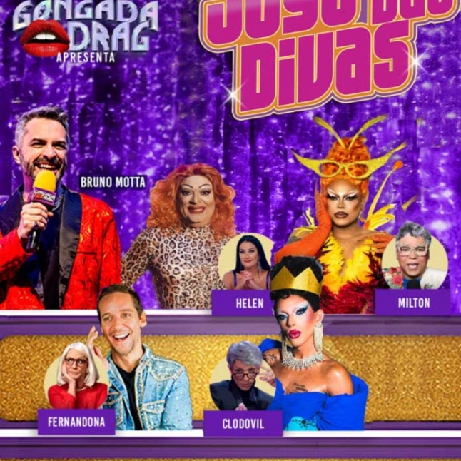 Após o sucesso de Gongada Drag, os mesmos produtores retornam aos palcos com um novo espetáculo: Jogo das Divas. A peça, que aposta no improviso e na comédia, promete uma noite repleta de irreverência, diversão e muita representatividade. A apresentação acontece nesta quarta-feira (29), no Teatro Claro Mais Rio, em Copacabana, sob o comando do humorista Bruno Motta. Ele conduz uma divertida competição entre drag queens e comediantes LGBT.